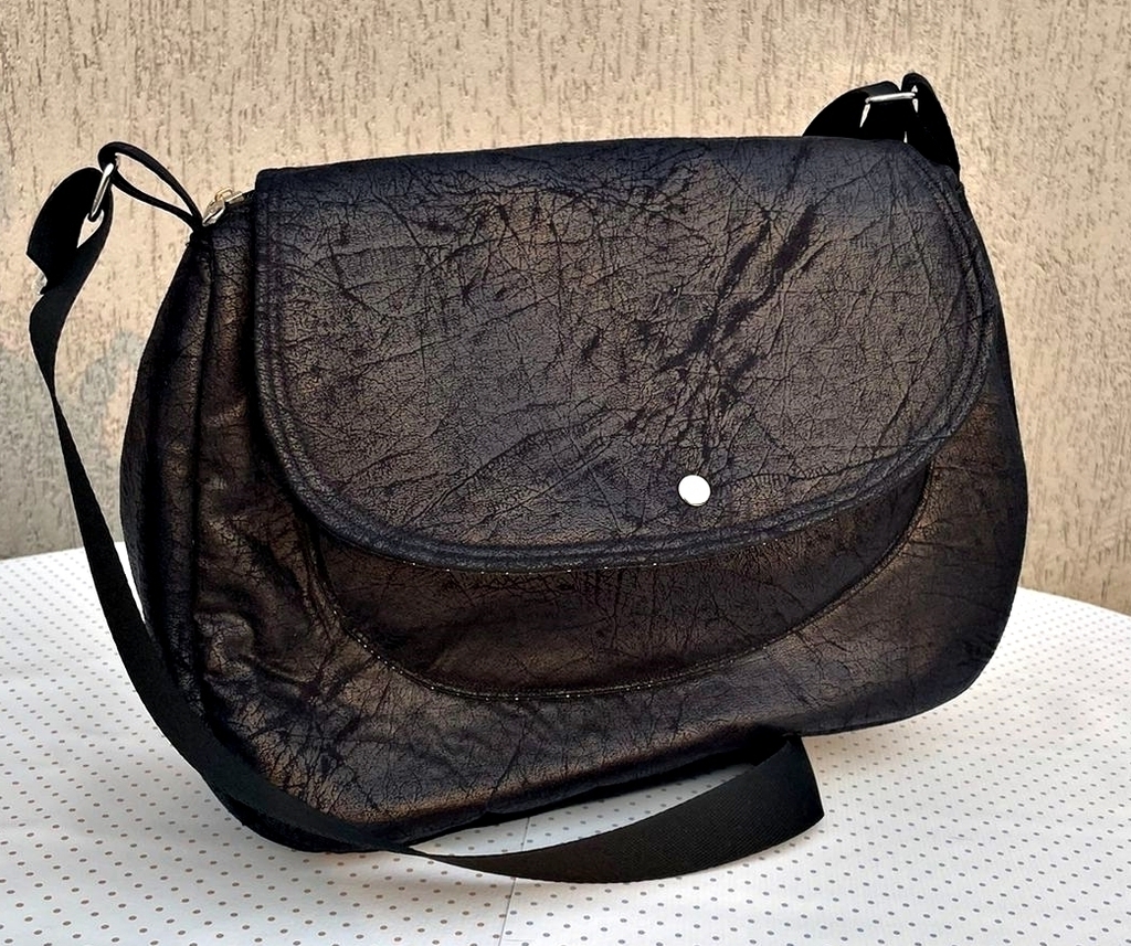 Bolsa transversal com regulagem, produzida no material Nobuck, tecido sintético tendo sua principal característica a aparência rústica "craquelada", semelhante ao couro.